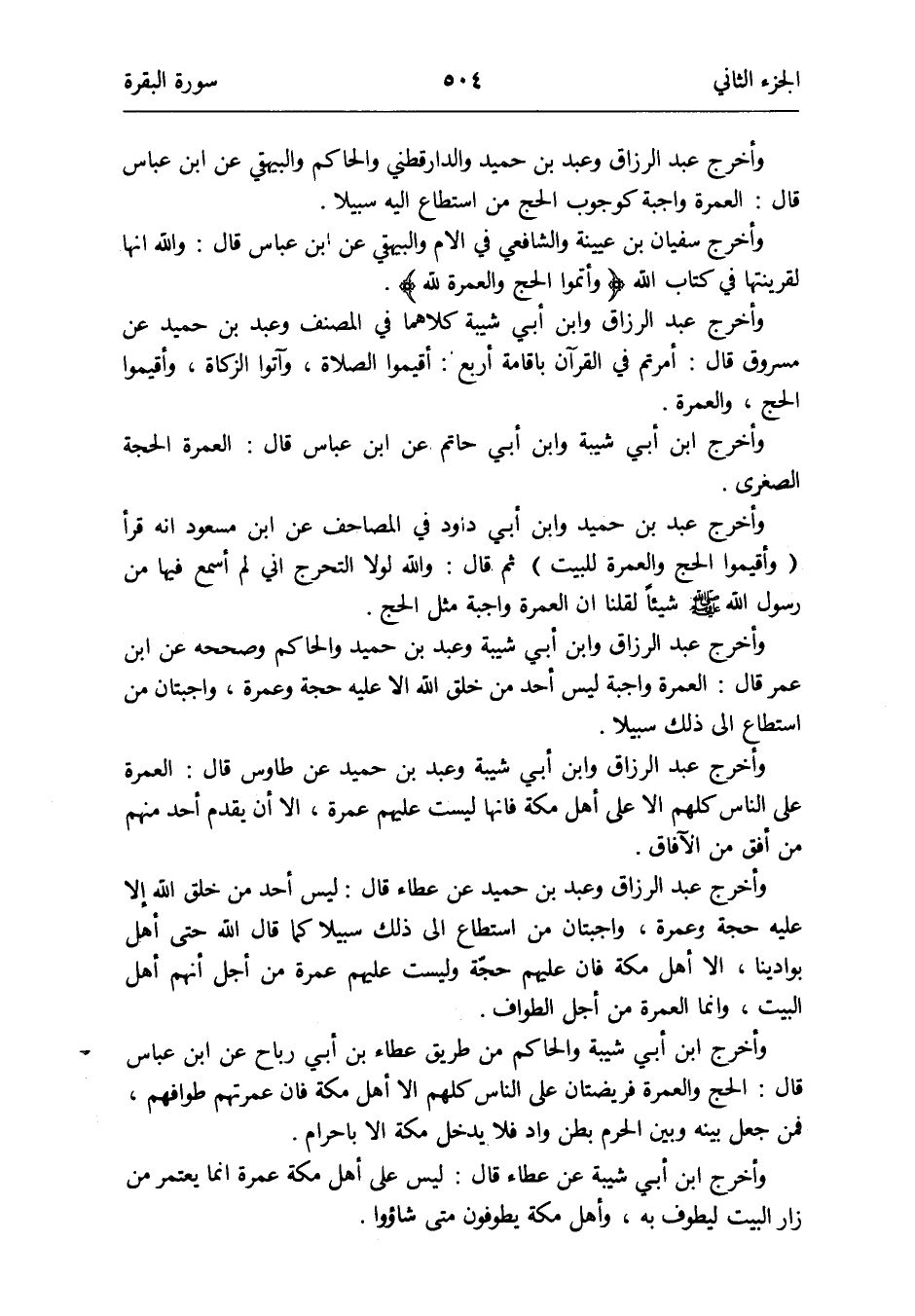 وَأخرج عبد الرَّزَّاق وَعبد بن حميد وَالدَّارَقُطْنِيّ وَالْحَاكِم وَالْبَيْهَقِيّ عَن ابْن عَبَّاس قَالَ: الْعمرَة وَاجِبَة كوجوب الْحَج من اسْتَطَاعَ إِلَيْهِ سَبِيلا