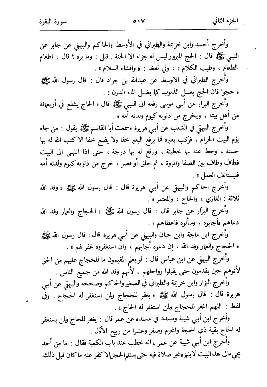 وَأخرج أَحْمد وَابْن خُزَيْمَة وَالطَّبَرَانِيّ فِي الْأَوْسَط وَالْحَاكِم وَالْبَيْهَقِيّ عَن جَابر عَن النَّبِي صلى الله عَلَيْهِ وَسلم قَالَ: الْحَج المبرور لَيْسَ لَهُ جَزَاء إِلَّا الْجنَّة