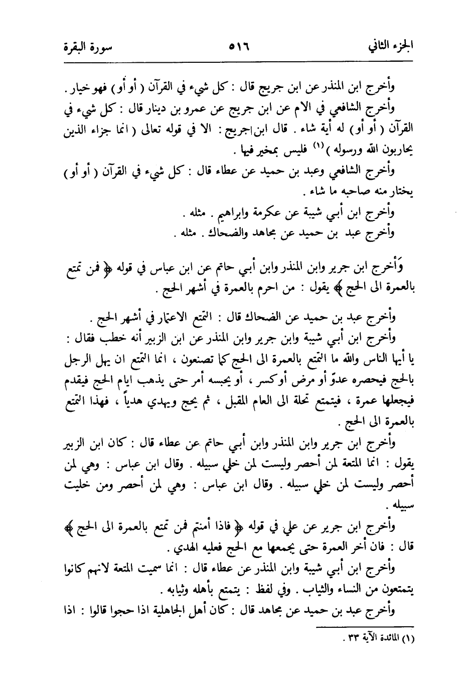 وَأخرج ابْن جرير وَابْن الْمُنْذر وَابْن أبي حَاتِم عَن ابْن عَبَّاس فِي قَوْله {فَمن تمتّع بِالْعُمْرَةِ إِلَى الْحَج} يَقُول: من أحرم بِالْعُمْرَةِ فِي أشهر الْحَج