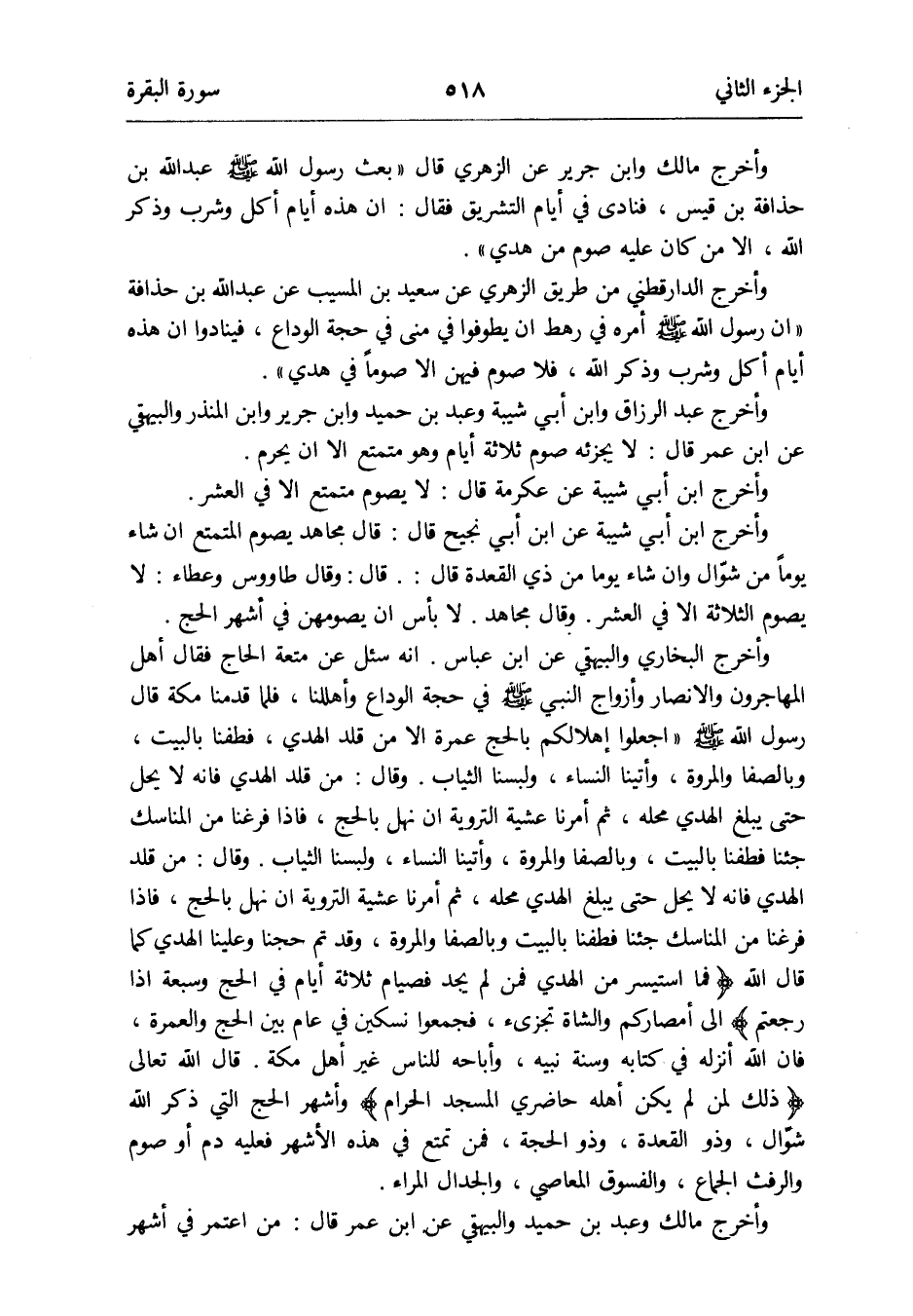 وَأخرج مَالك وَابْن جرير عَن الزُّهْرِيّ قَالَ بعث رَسُول الله صلى الله عَلَيْهِ وَسلم عبد الله بن حذاقة بن قيس فَنَادَى فِي أَيَّام التَّشْرِيق فَقَالَ: إِن هَذِه أَيَّام أكل وَشرب وَذكر الله إِلَّا من كَانَ عَلَيْهِ صَوْم من هدي