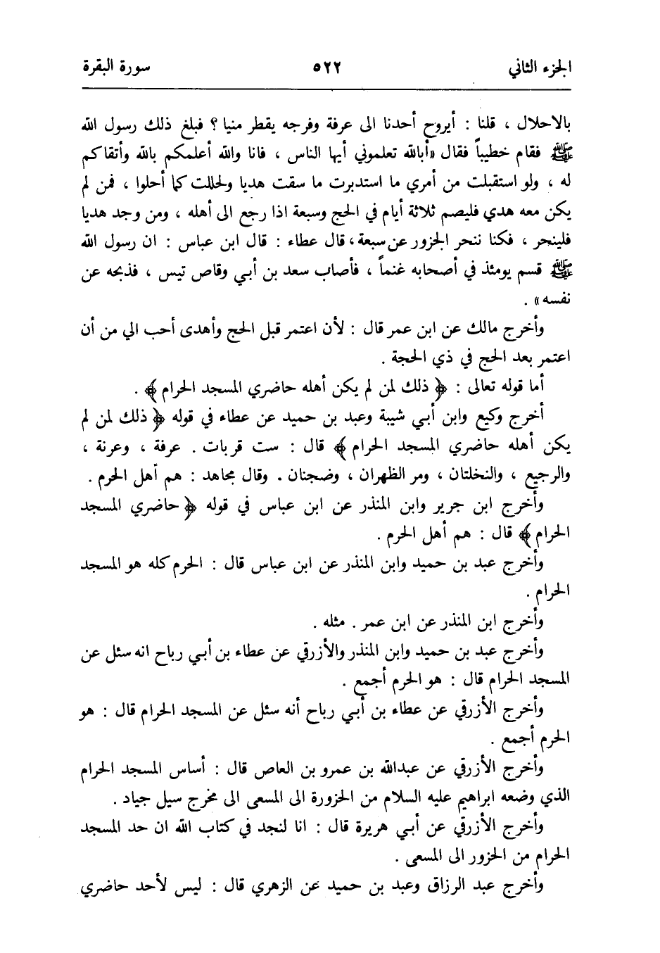 وَأخرج عبد بن حميد وَابْن الْمُنْذر والأزرقي عَن عَطاء بن أبي رَبَاح أَنه سُئِلَ عَن الْمَسْجِد الْحَرَام قَالَ: هُوَ الْحرم أجمع