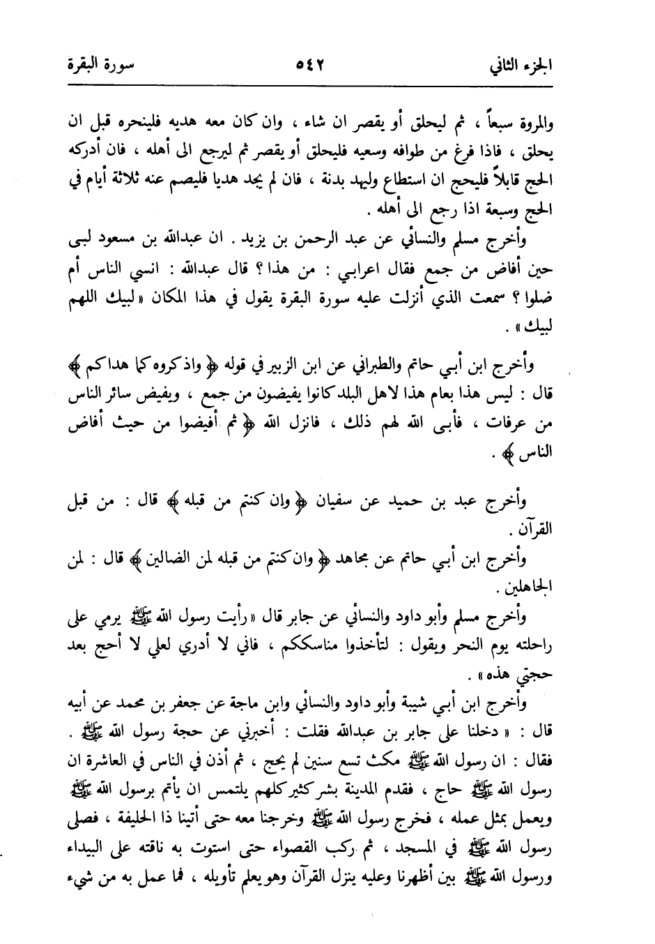 وَأخرج ابْن أبي حَاتِم وَالطَّبَرَانِيّ عَن ابْن الزبير فِي قَوْله {واذكروه كَمَا هدَاكُمْ} قَالَ: لَيْسَ هَذَا بعام هَذَا لأهل الْبَلَد كَانُوا يفيضون من جمع وَيفِيض النَّاس من عَرَفَات فَأبى الله لَهُم ذَلِك فَأنْزل الله {ثمَّ أفيضوا من حَيْثُ أَفَاضَ النَّاس}