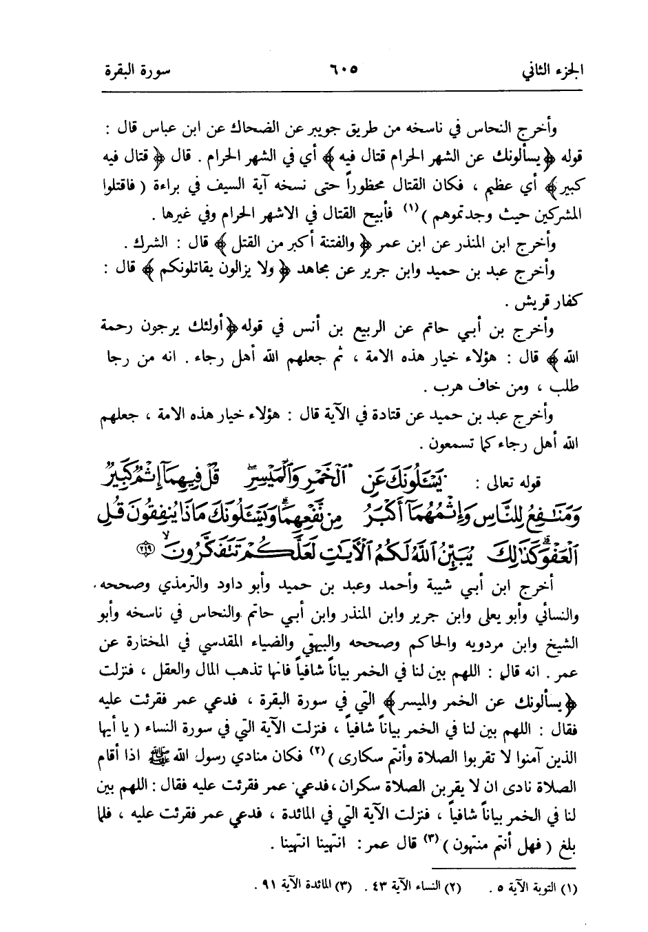 أخرج ابْن أبي شيبَة وَأحمد وَعبد بن حميد وَأَبُو دَاوُد وَالتِّرْمِذِيّ وَصَححهُ وَالنَّسَائِيّ وَأَبُو يعلى وَابْن جرير وَابْن الْمُنْذر وَابْن أبي حَاتِم والنحاس فِي ناسخه وَأَبُو الشَّيْخ وَابْن مرْدَوَيْه وَالْحَاكِم وَصَححهُ وَالْبَيْهَقِيّ والضياء الْمَقْدِسِي فِي المختارة عَن عمر