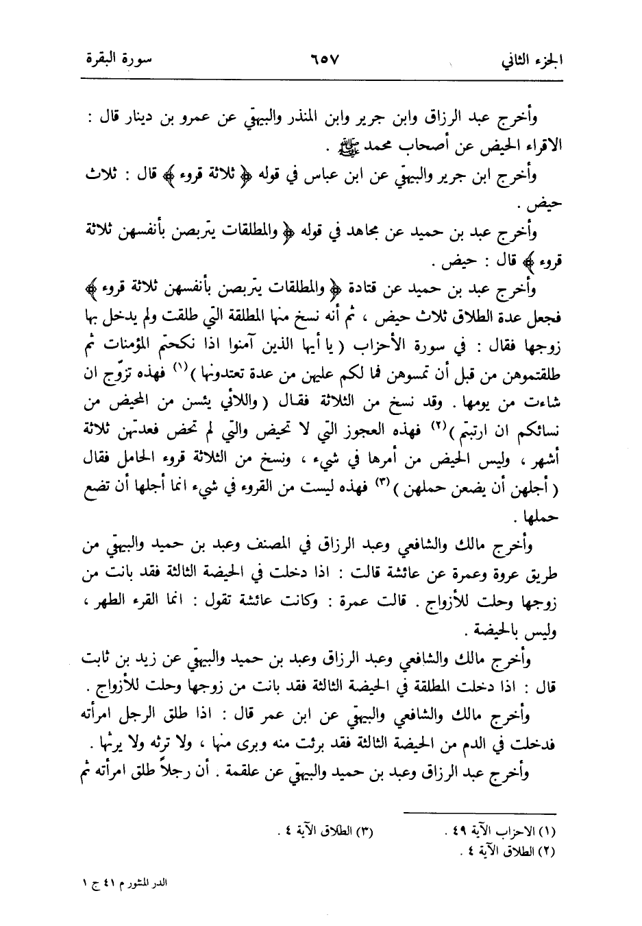 وَأخرج ابْن جرير وَالْبَيْهَقِيّ عَن ابْن عَبَّاس فِي قَوْله {ثَلَاثَة قُرُوء} قَالَ: ثَلَاث حيض