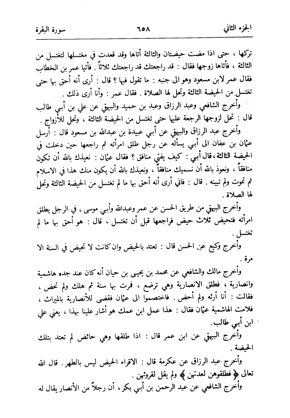 وَأخرج الشَّافِعِي وَعبد الرَّزَّاق وَعبد بن حميد وَالْبَيْهَقِيّ عَن عَليّ بن أبي طَالب قَالَ: تحل لزَوجهَا الرّجْعَة عَلَيْهَا حَتَّى تَغْتَسِل من الْحَيْضَة الثَّالِثَة وَتحل للأزواج