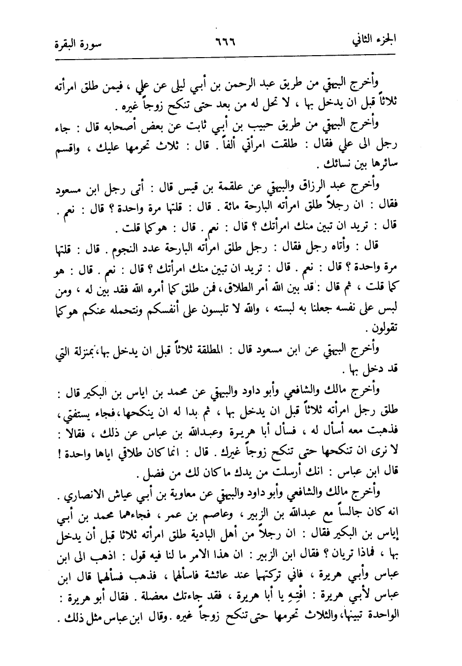 وَأخرج عبد الرَّزَّاق وَالْبَيْهَقِيّ عَن عَلْقَمَة بن قيس قَالَ: أَتَى رجل إِلَى ابْن مَسْعُود فَقَالَ: إِن رجلا طلق امْرَأَته البارحة مائَة