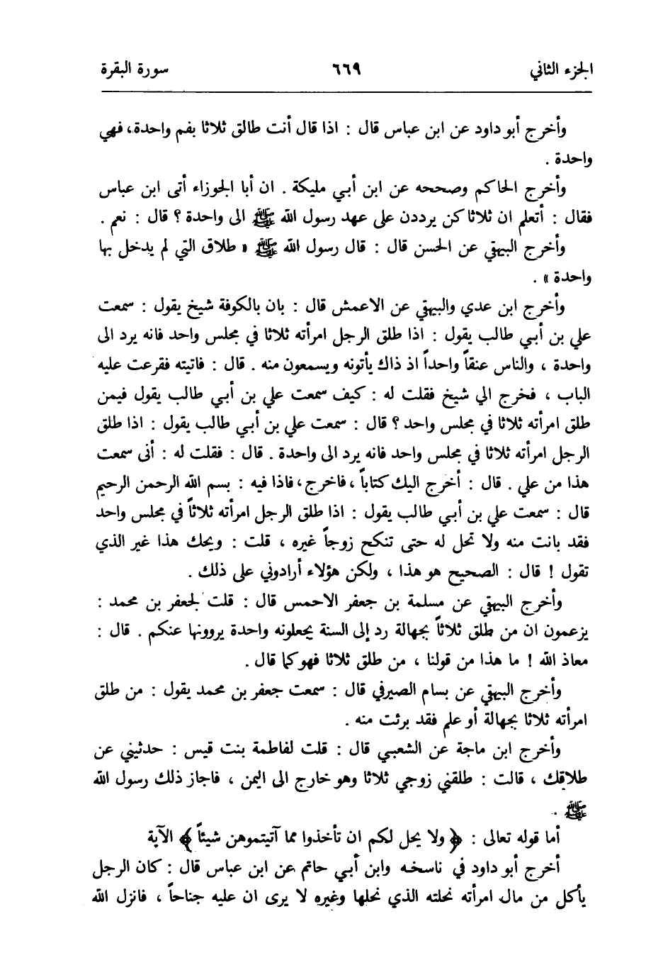 وَأخرج الْبَيْهَقِيّ عَن مسلمة بن جَعْفَر الأحمس قَالَ: قلت لجَعْفَر بن مُحَمَّد: يَزْعمُونَ أَن من طلق ثَلَاثًا بِجَهَالَة رد إِلَى السّنة يجعلونه وَاحِدَة عَنْكُم