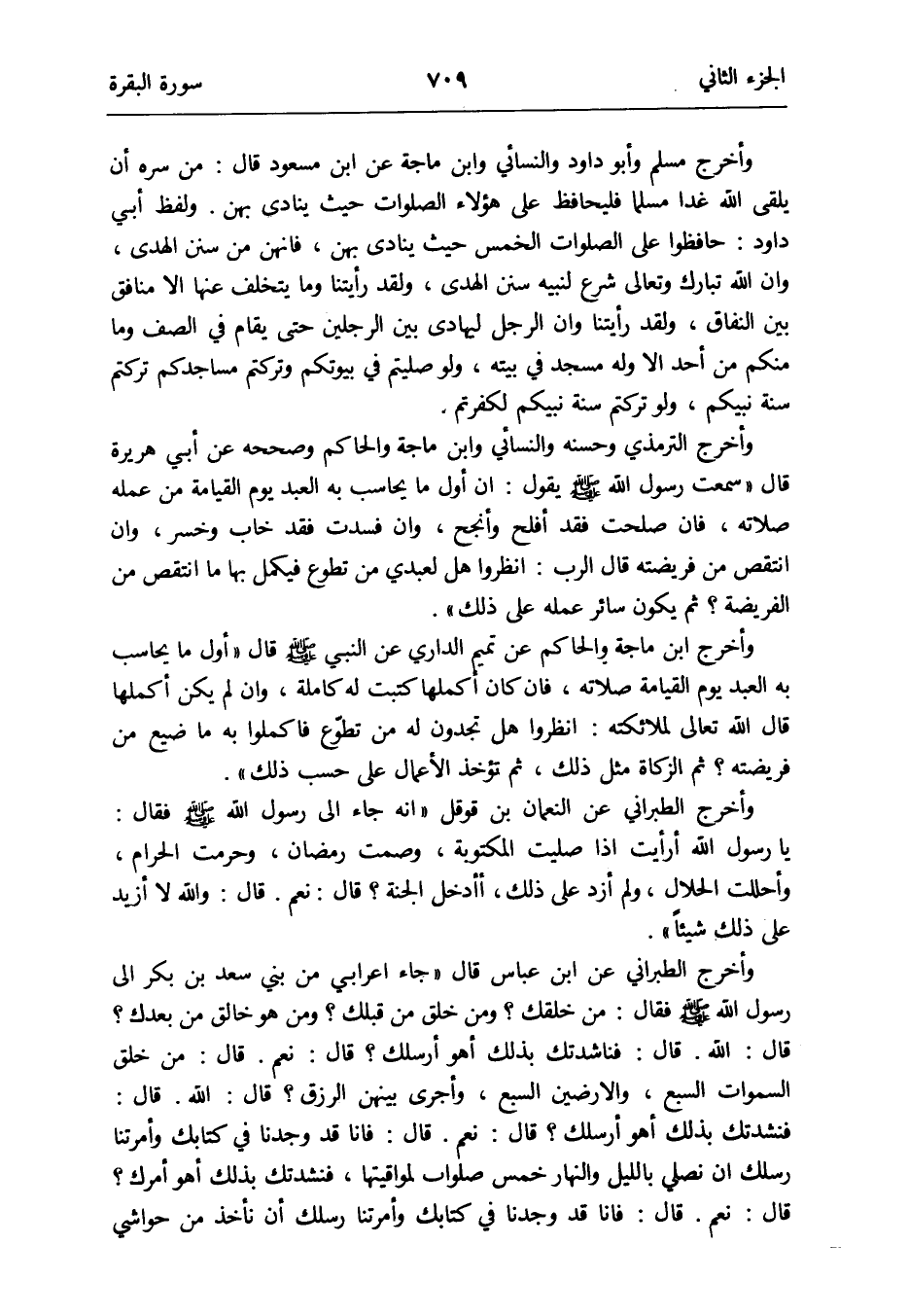 وَأخرج مُسلم وَأَبُو دَاوُد وَالنَّسَائِيّ وَابْن ماجة عَن ابْن مَسْعُود قَالَ: من سره أَن يلقى الله غَدا مُسلما فليحافظ على هَؤُلَاءِ الصَّلَوَات حَيْثُ يُنَادى بِهن