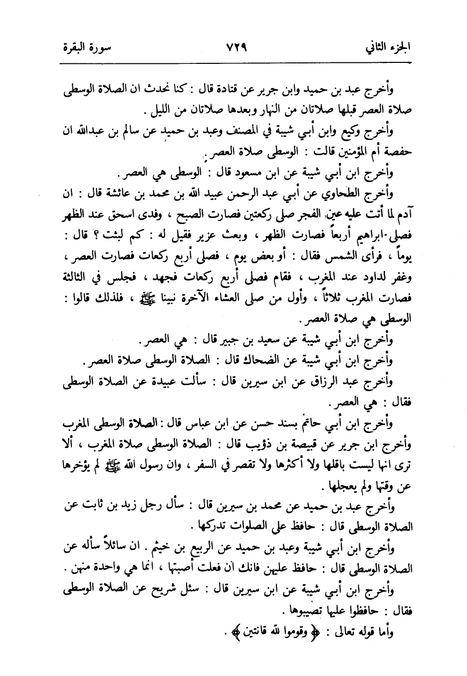 وَأخرج عبد بن حميد عَن مُحَمَّد بن سِيرِين قَالَ: سَأَلَ رجل زيد بن ثَابت عَن الصَّلَاة الْوُسْطَى قَالَ: حَافظ على الصَّلَوَات تدركها