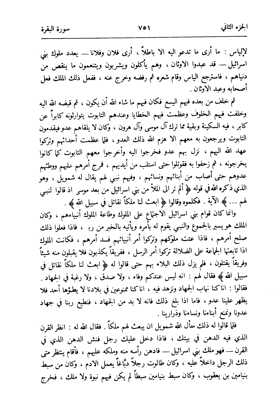 وَإِنَّمَا كَانَ قوام بني اسرائيل الِاجْتِمَاع على الْمُلُوك وَطَاعَة الْمُلُوك أنبياءهم وَكَانَ الْملك هُوَ يسير بالجموع وَالنَّبِيّ يقوم لَهُ بأَمْره ويأتيه بالْخبر من ربه فَإِذا فعلوا ذَلِك صلح أَمرهم فَإِذا عَتَتْ مُلُوكهمْ وَتركُوا أَمر أَنْبِيَائهمْ فسد أَمرهم فَكَانَت الْمُلُوك إِذا تابعتها الْجَمَاعَة على الضَّلَالَة تركُوا أَمر الرُّسُل ففريقاً يكذبُون فَلَا يقبلُونَ مِنْهُ شَيْئا وفريقاً يقتلُون فَلم يزل ذَلِك الْبلَاء بهم حَتَّى قَالُوا {ابْعَثْ لنا ملكا نُقَاتِل فِي سَبِيل الله} فَقَالَ لَهُم: إِنَّه لَيْسَ عنْدكُمْ وَفَاء وَلَا صدق وَلَا رَغْبَة فِي الْجِهَاد