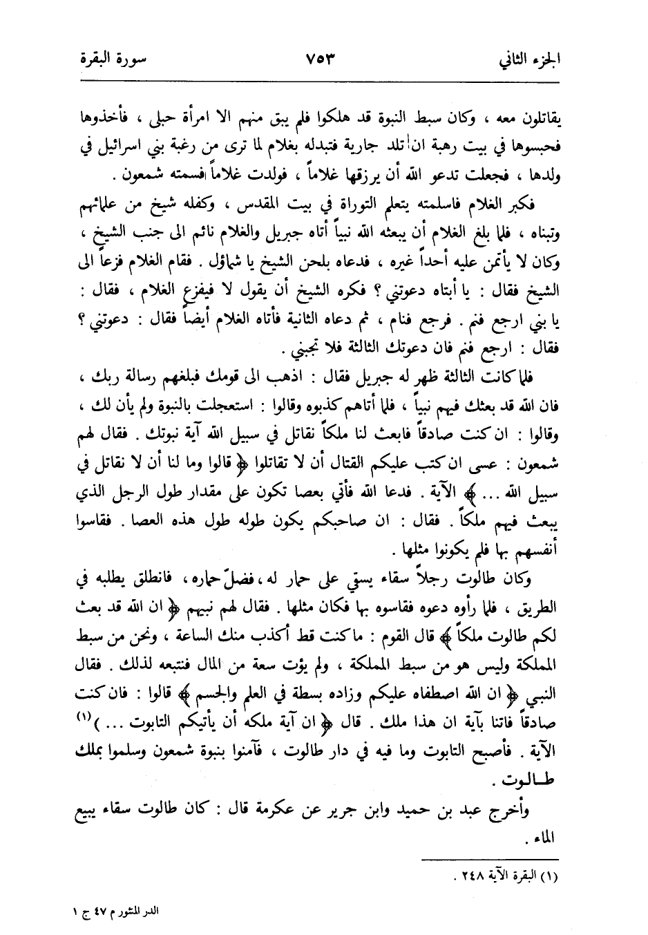 وَأخرج عبد بن حميد وَابْن جرير عَن عِكْرِمَة قَالَ: كَانَ طالوت سقاء يَبِيع المَاء