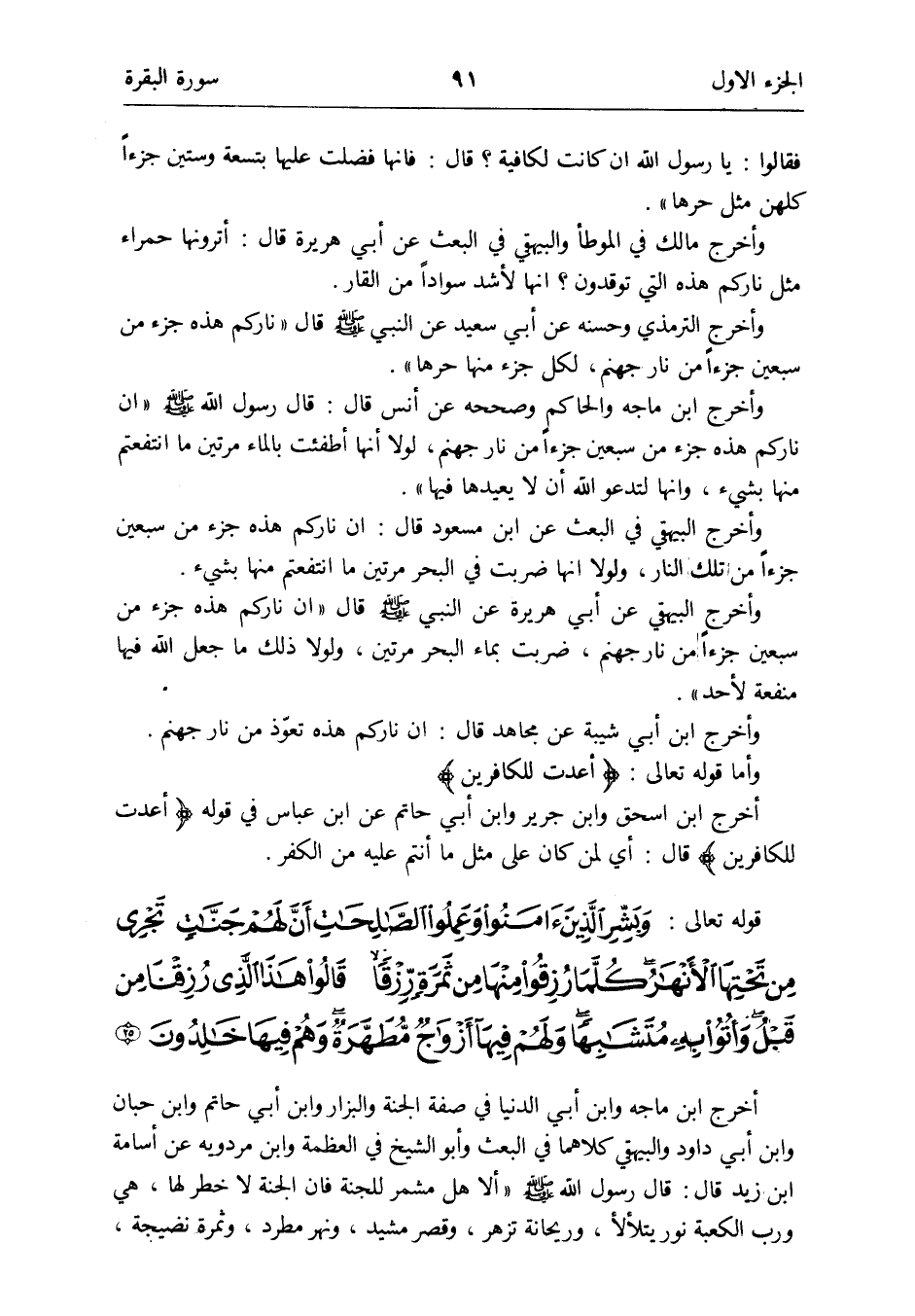 وَأخرج التِّرْمِذِيّ وَحسنه عَن أبي سعيد عَن النَّبِي صلى الله عَلَيْهِ وَسلم قَالَ نَاركُمْ هَذِه جُزْء من سبعين جُزْءا من نَار جَهَنَّم لكل جُزْء مِنْهَا حرهَا