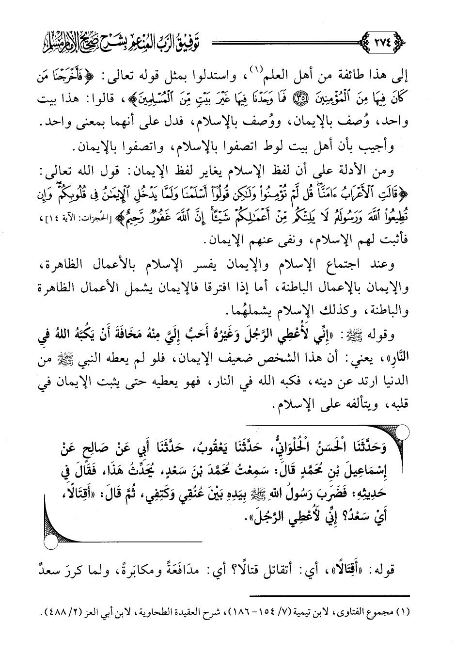 (¬١) مجموع الفتاوى، لابن تيمية (٧/ ١٥٤ - ١٨٦)، شرح العقيدة الطحاوية، لابن أبي العز (٢/ ٤٨٨).