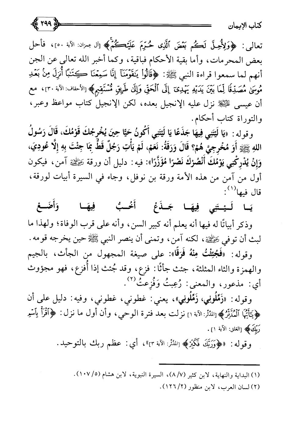 وقوله: ((يَا لَيْتَنِي فِيهَا جَذَعًا يَا لَيْتَنِي أَكُونُ حَيًّا حِينَ يُخْرِجُكَ قَوْمُكَ، قَالَ رَسُولُ اللَّهِ صلى الله عليه وسلم أَوَ مُخْرِجِيَّ هُمْ؟ قَالَ وَرَقَةُ: نَعَمْ، لَمْ يَأْتِ رَجُلٌ قَطُّ بِمَا جِئْتَ بِهِ إِلَّا عُودِيَ، وَإِنْ يُدْرِكْنِي يَوْمُكَ أَنْصُرْكَ نَصْرًا مُؤَزَّرًا)): فيه دليل أن ورقة رضي الله عنه آمن، فيكون أول من آمن من هذه الأمة ورقة بن نوفل، وجاء في السيرة أبيات لورقة، قال فيها (¬١):
