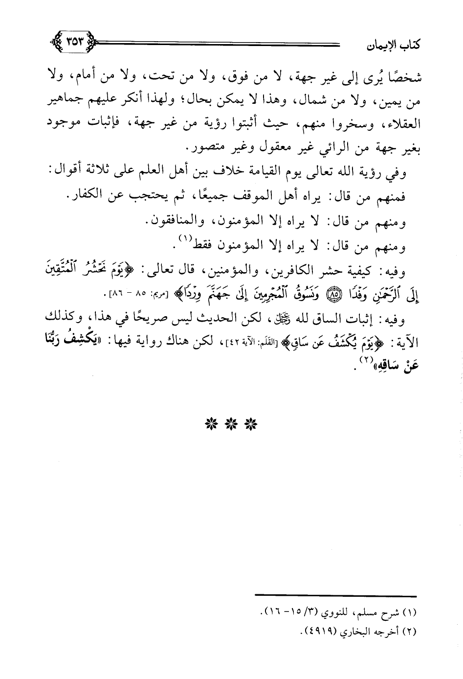 وفي رؤية الله تعالى يوم القيامة خلاف بين أهل العلم على ثلاثة أقوال: