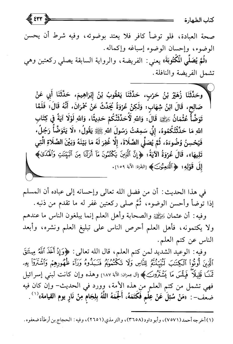 وفيه أن عثمان رضي الله عنه والصحابة وأهل العلم إنما يبلغون الناس ما عندهم ولا يكتمونه، فأهل العلم أحرص الناس على تبليغ العلم ونشره، وأبعد الناس عن كتم العلم.