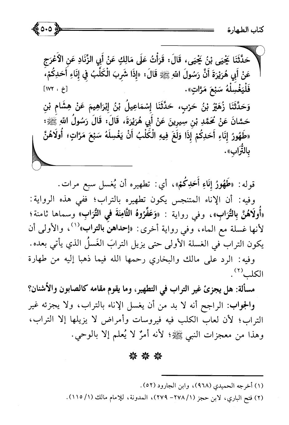(¬٢) فتح الباري (١/ ٢٧٨ - ٢٧٩)، المدونة (١/ ١١٥).