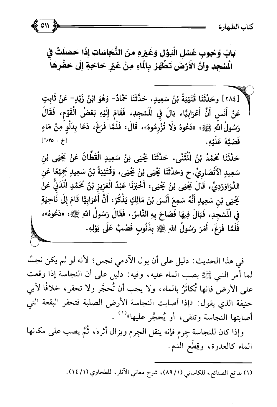 (¬١) بدائع الصنائع، للكاساني (١/ ٨٩)، شرح معاني الآثار، للطحاوي (١/ ١٤).
