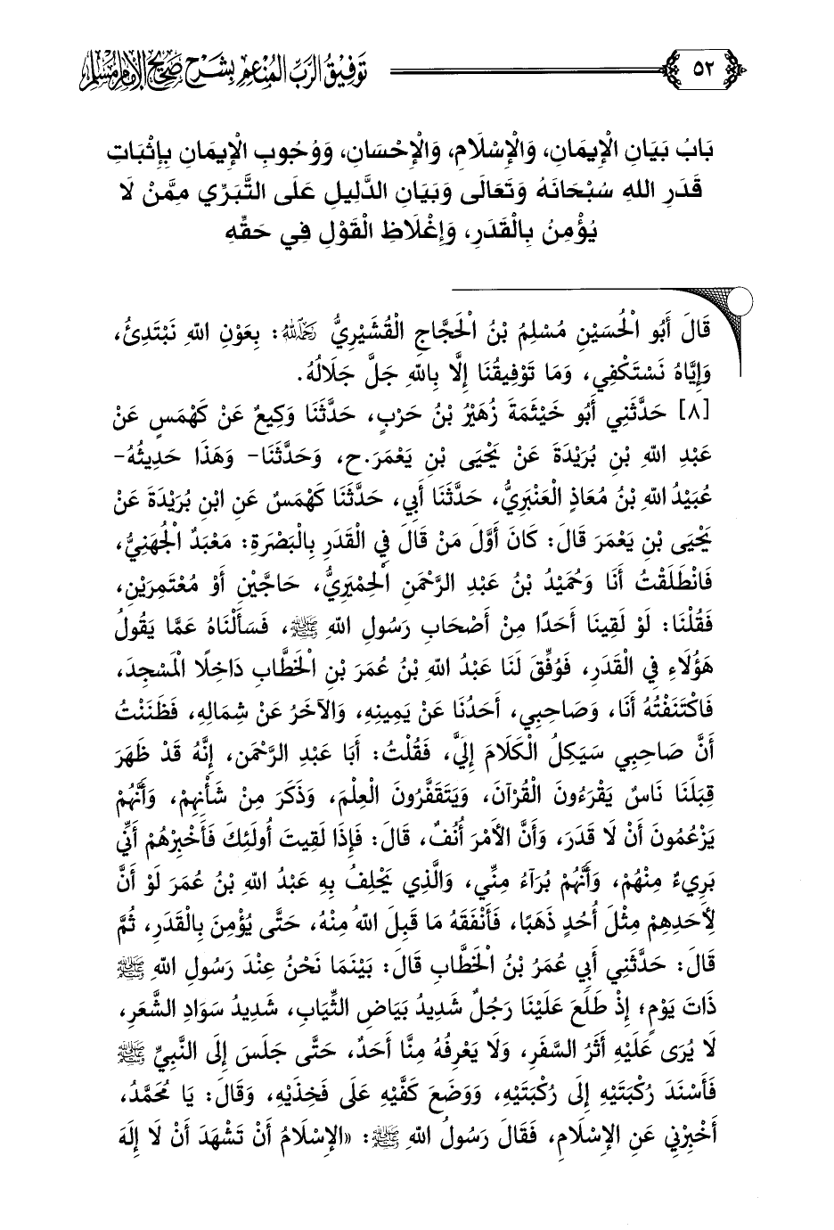 بَابُ بَيَانِ الْإِيمَانِ، وَالْإِسْلَامِ، وَالْإِحْسَانِ، وَوُجُوبِ الْإِيمَانِ بِإِثْبَاتِ