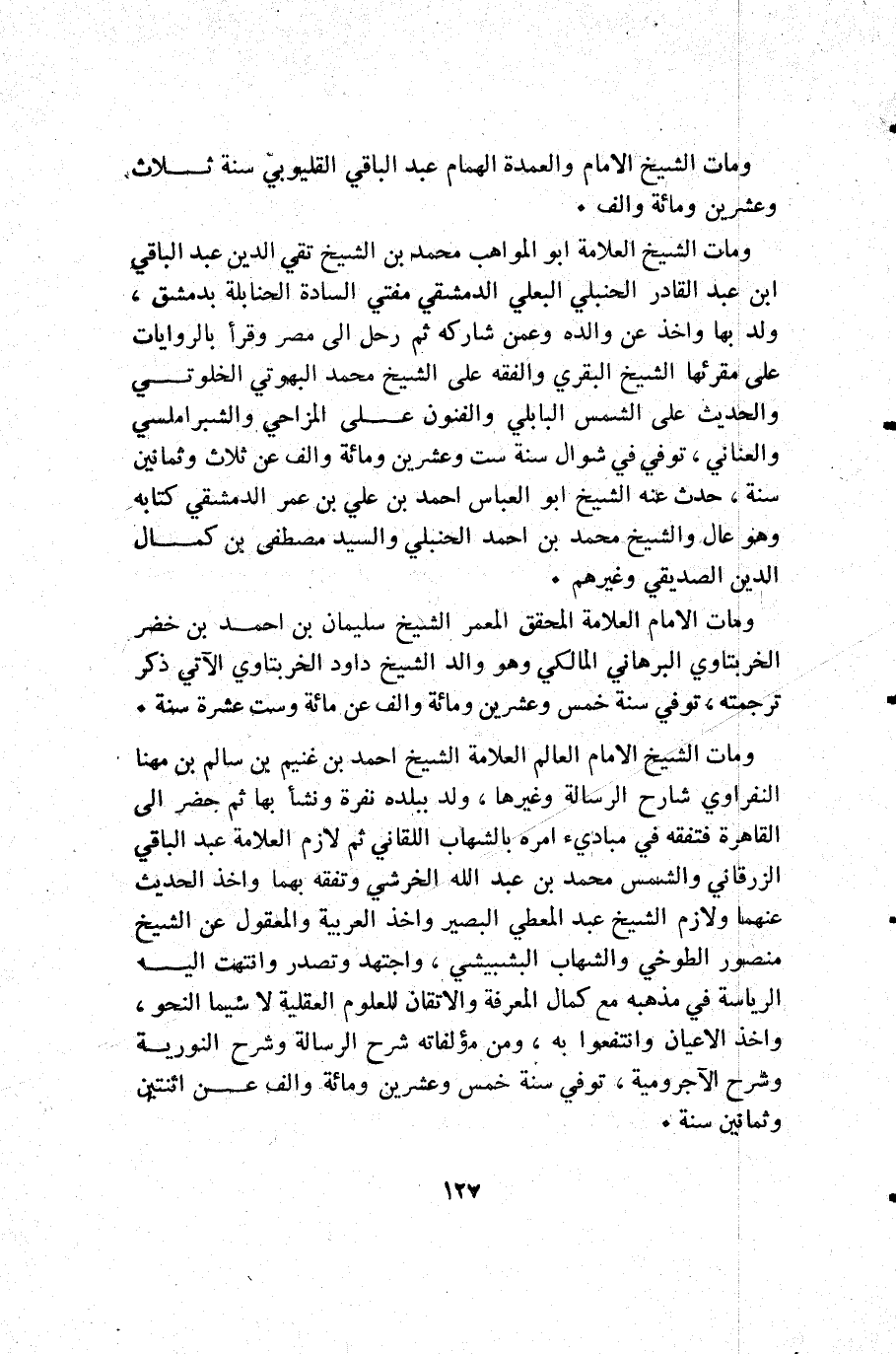 ومات الشيخ الإمام والعمدة الهمام عبد الباقي القليوبي سنة ثلاث وعشرين ومائة وألف.