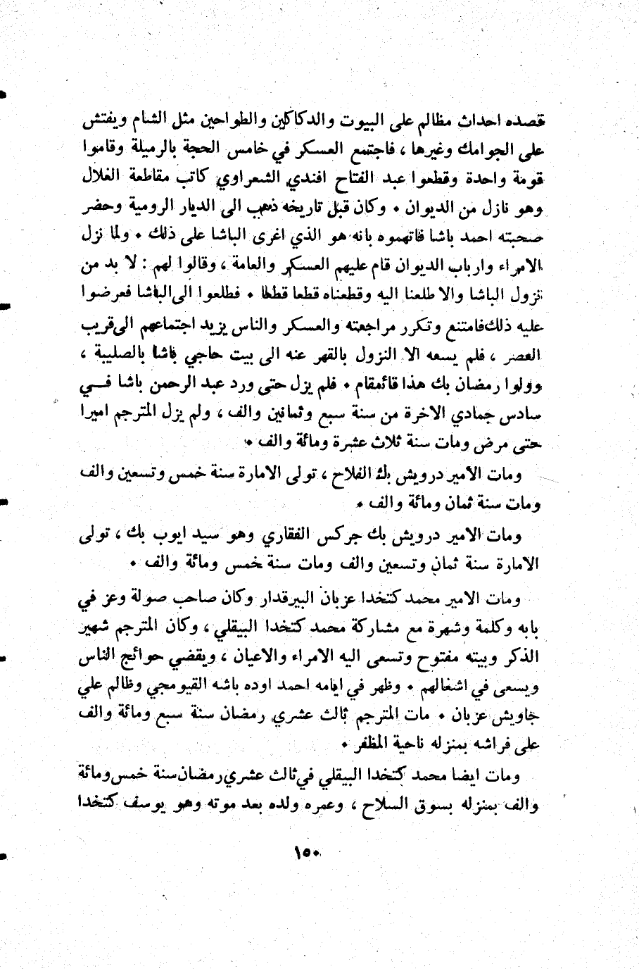 ومات الأمير درويش بك الفلاح تولى الإمارة سنة خمس وتسعين وألف ومات سنة ثمان ومائة وألف.