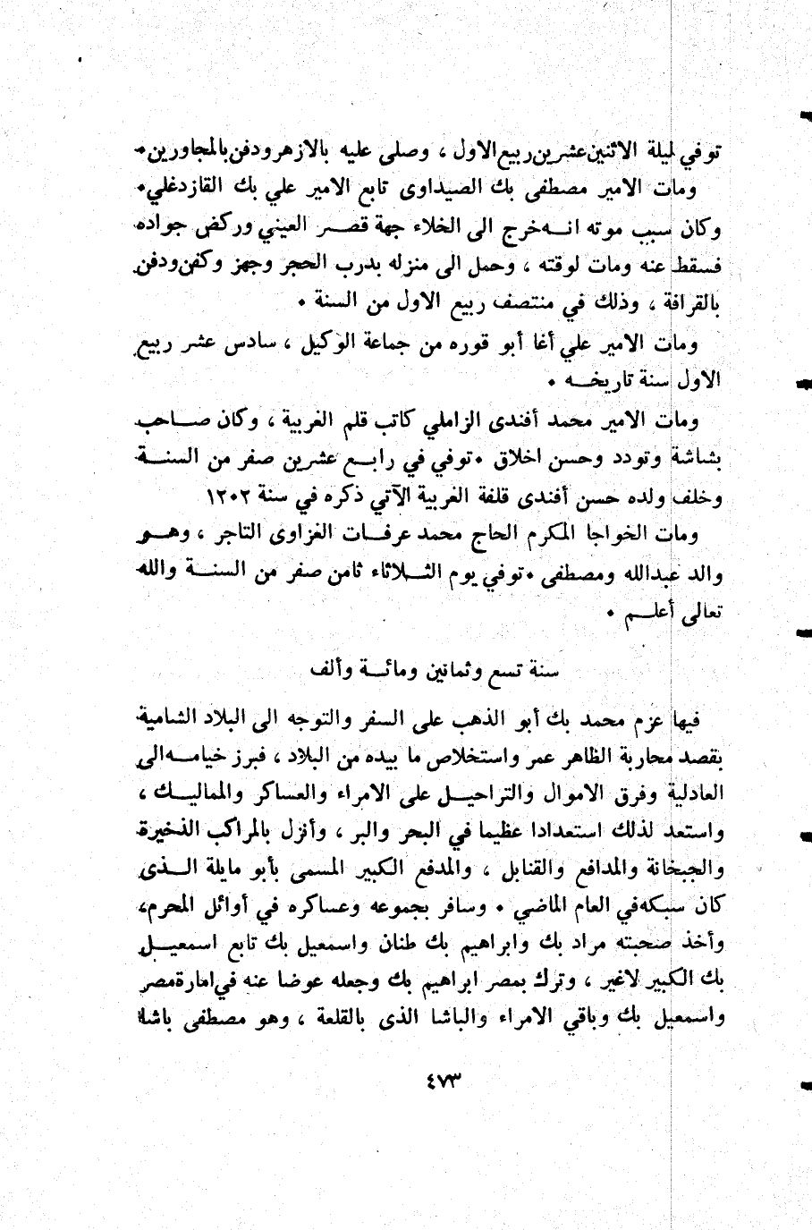ومات الأمير محمد أفندي الزاملي كاتب قلم الغربية وكان صاحب بشاشة وتودد وحسن اخلاق. توفي في رابع عشرين صفر من السنة وخلف ولده حسن أفندي قلفة الغربية الآتي ذكره في سنة 1202.