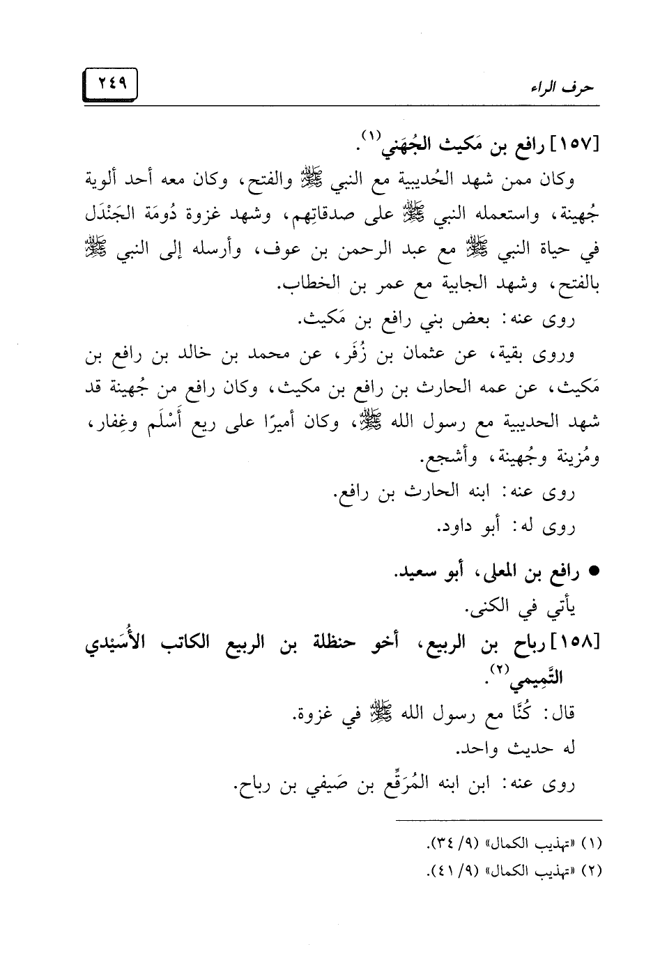 [١٥٨] رباح بن الربيع، أخو حنظلة بن الربيع الكاتب الأُسَيْدي التَّمِيمي (¬٢).