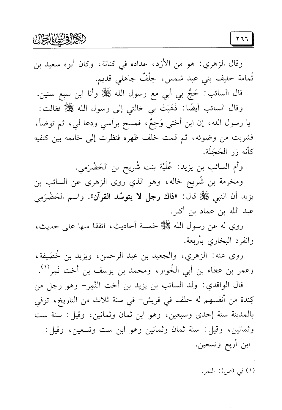 (¬١) في (ض): النمر.