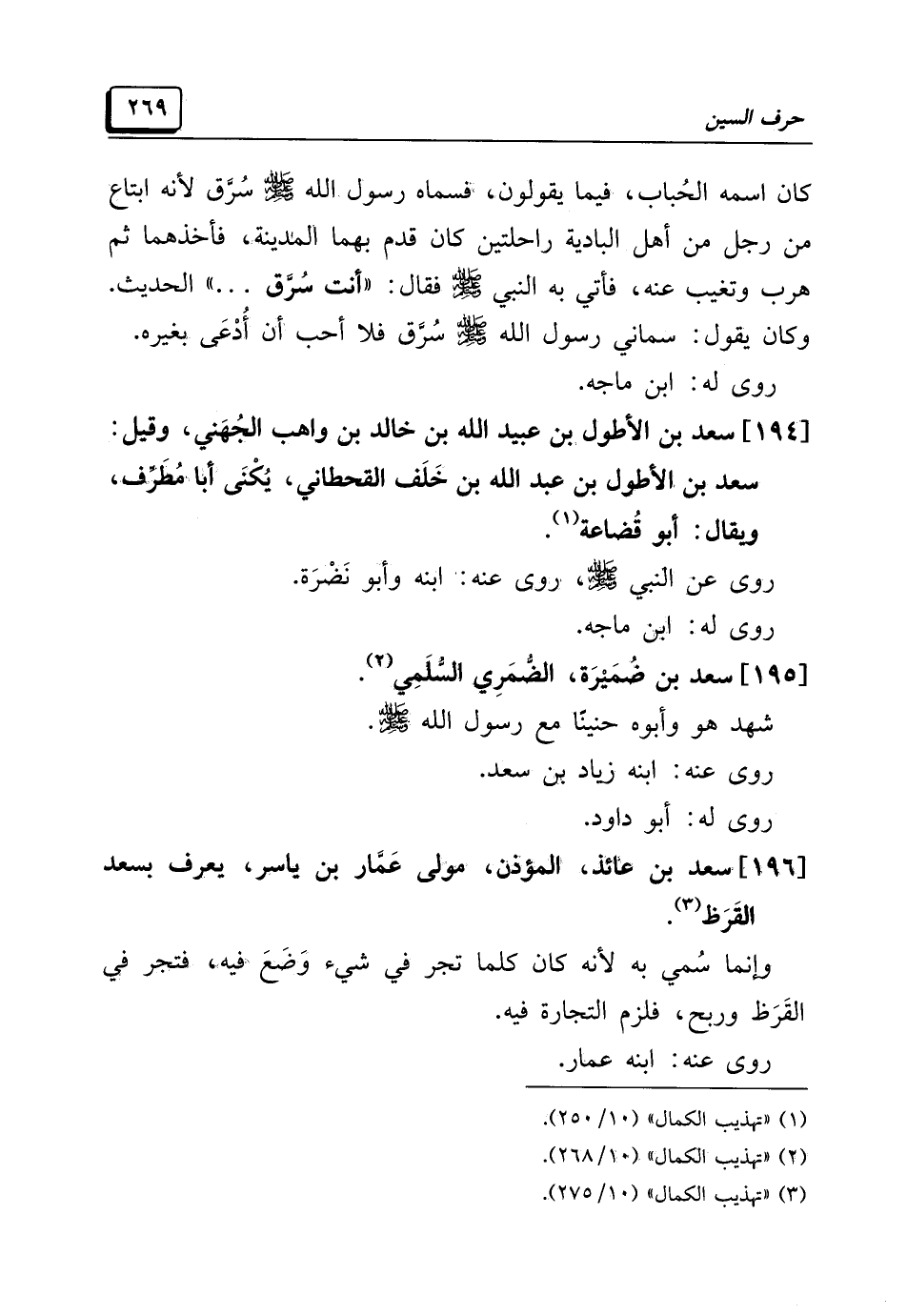 [١٩٤] سعد بن الأطول بن عبيد الله بن خالد بن واهب الجُهَني، وقيل: سعد بن الأطول بن عبد الله بن خَلَف القحطاني، يُكْنَى أبا مُطَرِّف، ويقال: أبو قُضاعة (¬١).
