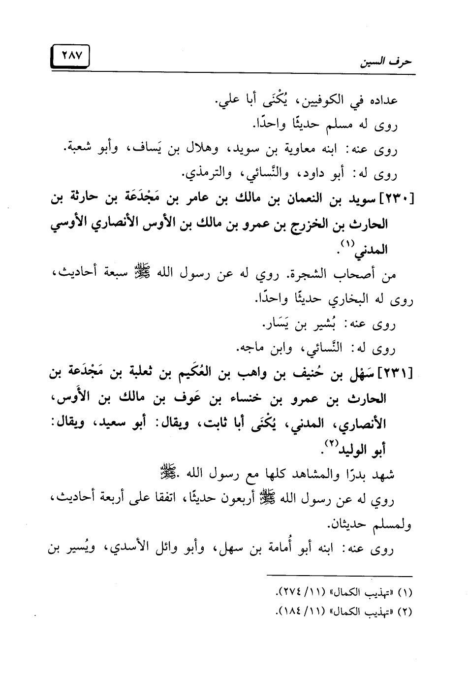 [٢٣١] سَهْل بن حُنيف بن واهب بن العُكَيم بن ثعلبة بن مَجْدَعة بن الحارث بن عمرو بن خنساء بن عَوف بن مالك بن الأَوس، الأنصاري، المدني، يُكْنَى أبا ثابت، ويقال: أبو سعيد، ويقال: أبو الوليد (¬٢).