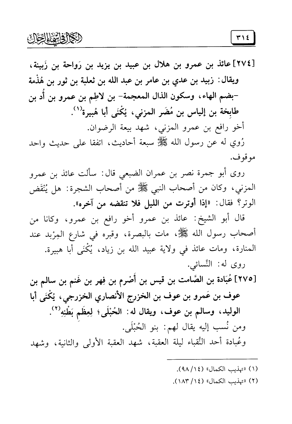(¬١) "تهذيب الكمال" (١٤/ ٩٨).