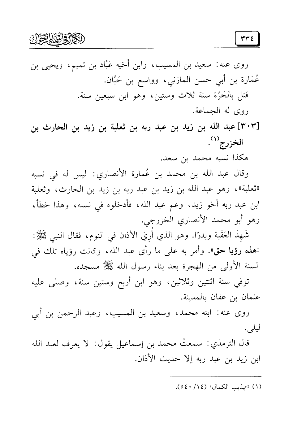 (¬١) "تهذيب الكمال" (١٤/ ٥٤٠).