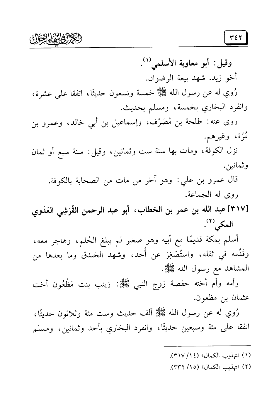 (¬٢) "تهذيب الكمال" (١٥/ ٣٣٢).