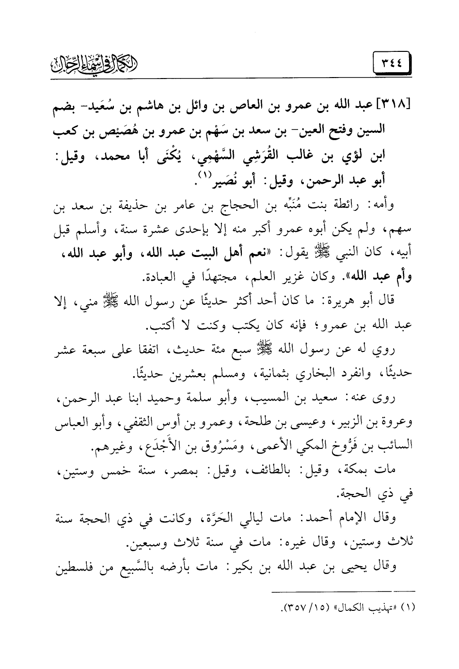 (¬١) "تهذيب الكمال" (١٥/ ٣٥٧).