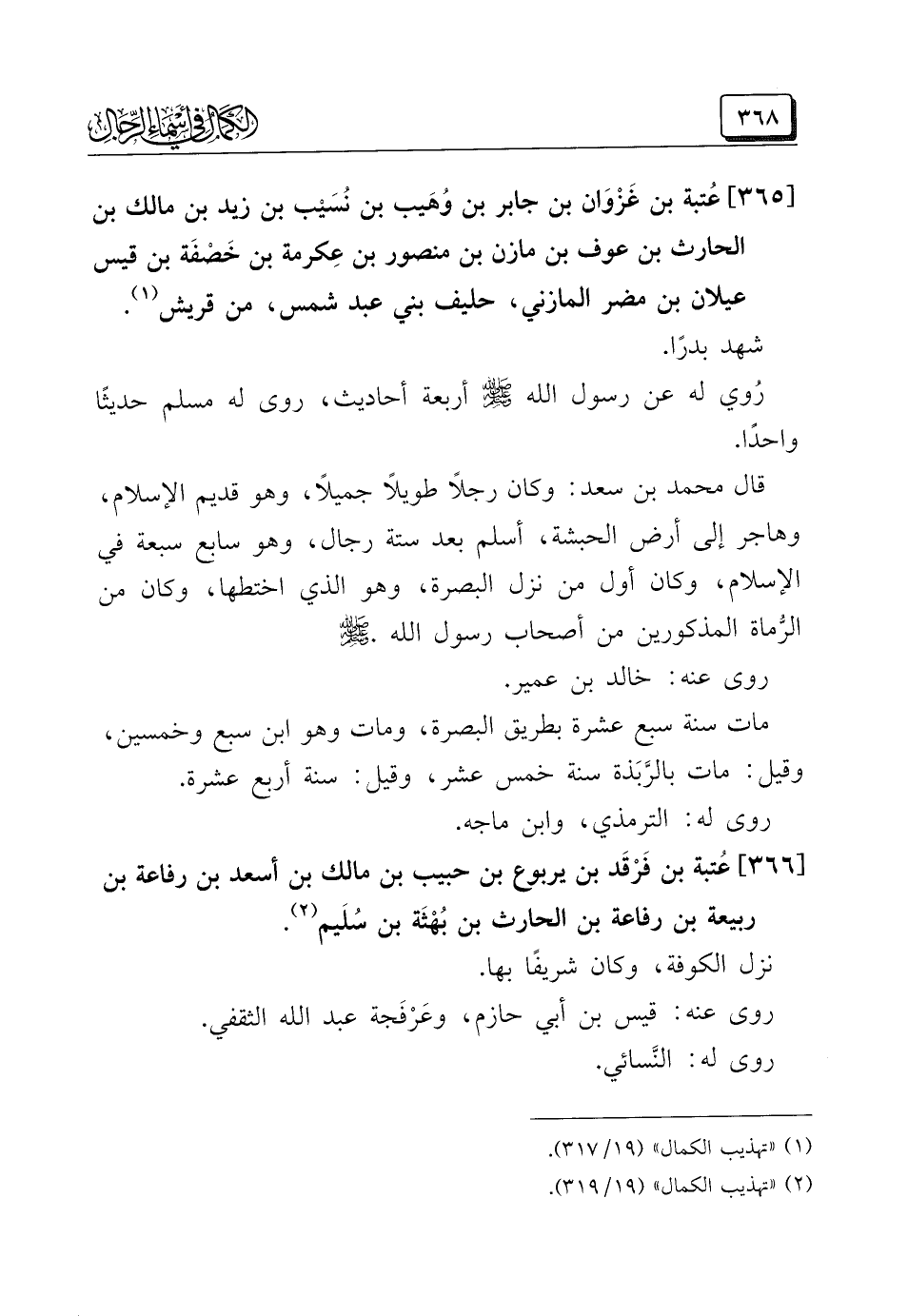 (¬١) "تهذيب الكمال" (١٩/ ٣١٧).
