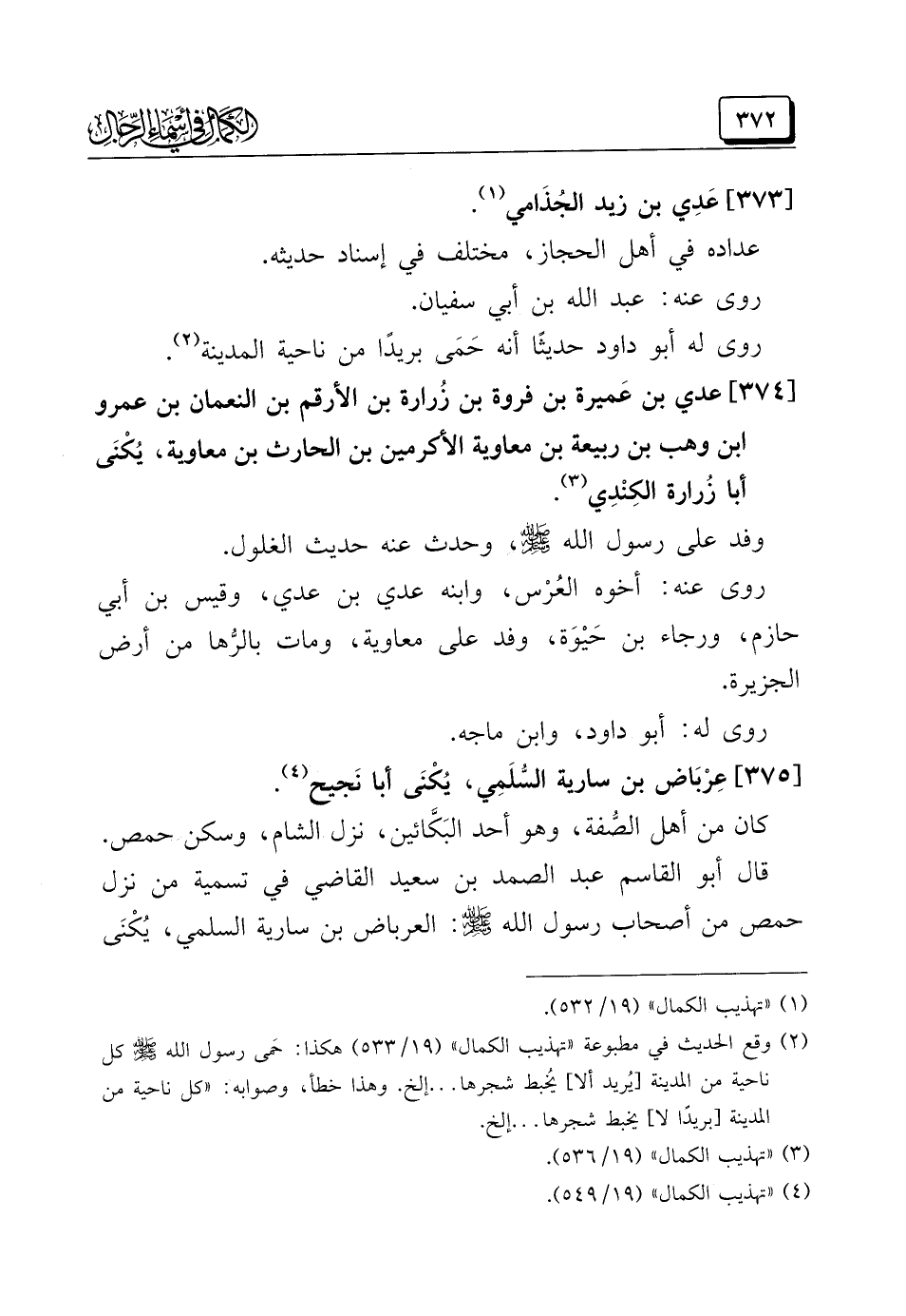 [٣٧٥] عِرْبَاض بن سارية السُّلَمِي، يُكْنَى أبا نَجيح (¬٤).