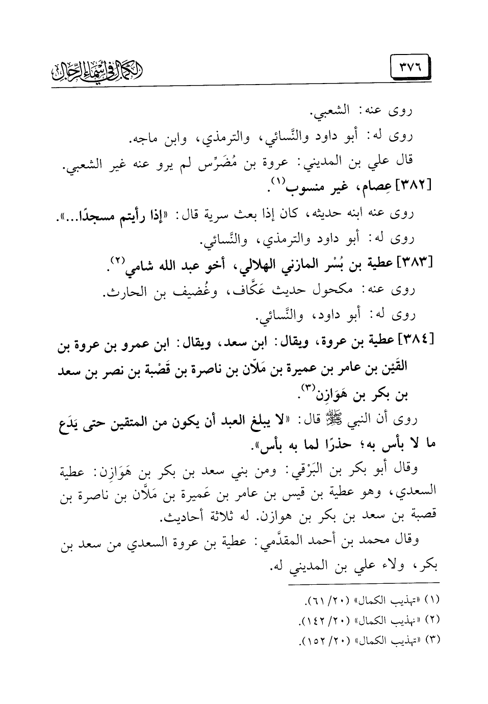 (¬٣) "تهذيب الكمال" (٢٠/ ١٥٢).
