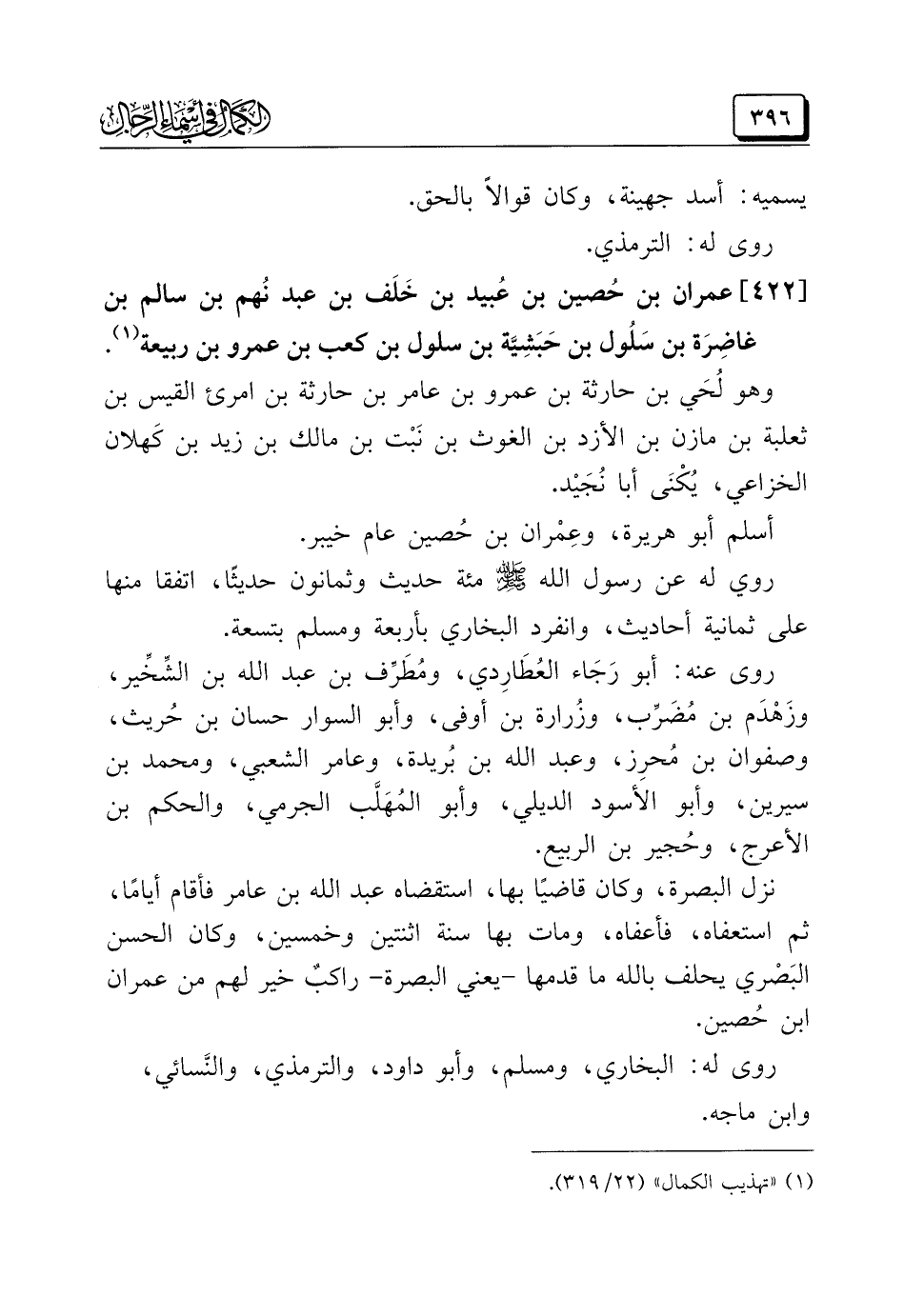 (¬١) "تهذيب الكمال" (٢٢/ ٣١٩).