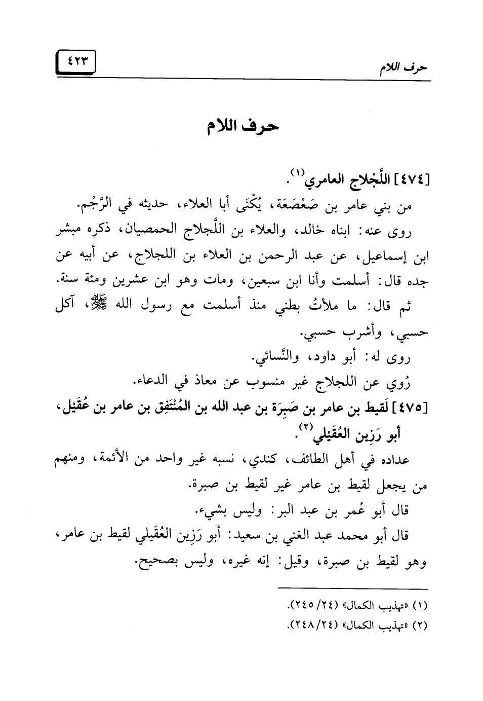 [٤٧٥] لَقيط بن عامر بن صَبِرَة بن عبد الله بن المُنْتَفِق بن عامر بن عُقَيْل، أبو رَزِين العُقَيْلي (¬٢).