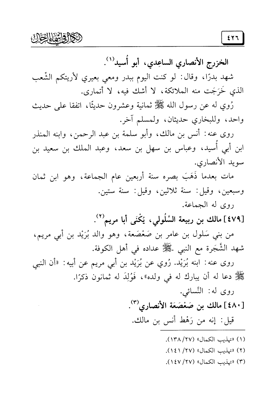 (¬١) "تهذيب الكمال" (٢٧/ ١٣٨).