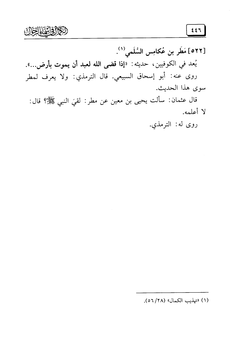 (¬١) "تهذيب الكمال" (٢٨/ ٥٦).