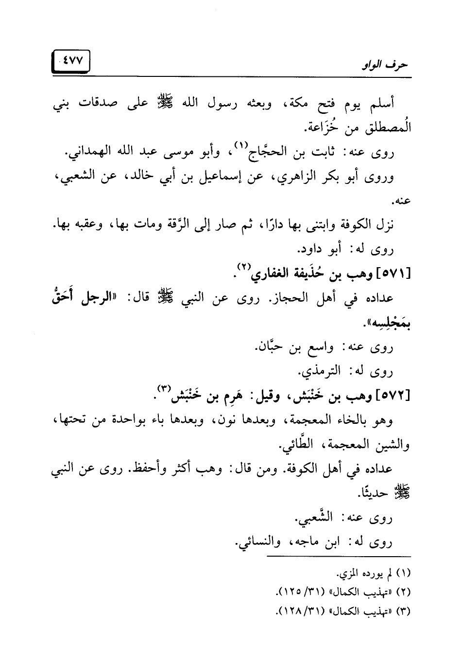 [٥٧٢] وَهْب بن خَنْبَش، وقيل: هَرِم بن خَنْبَش (¬٣).