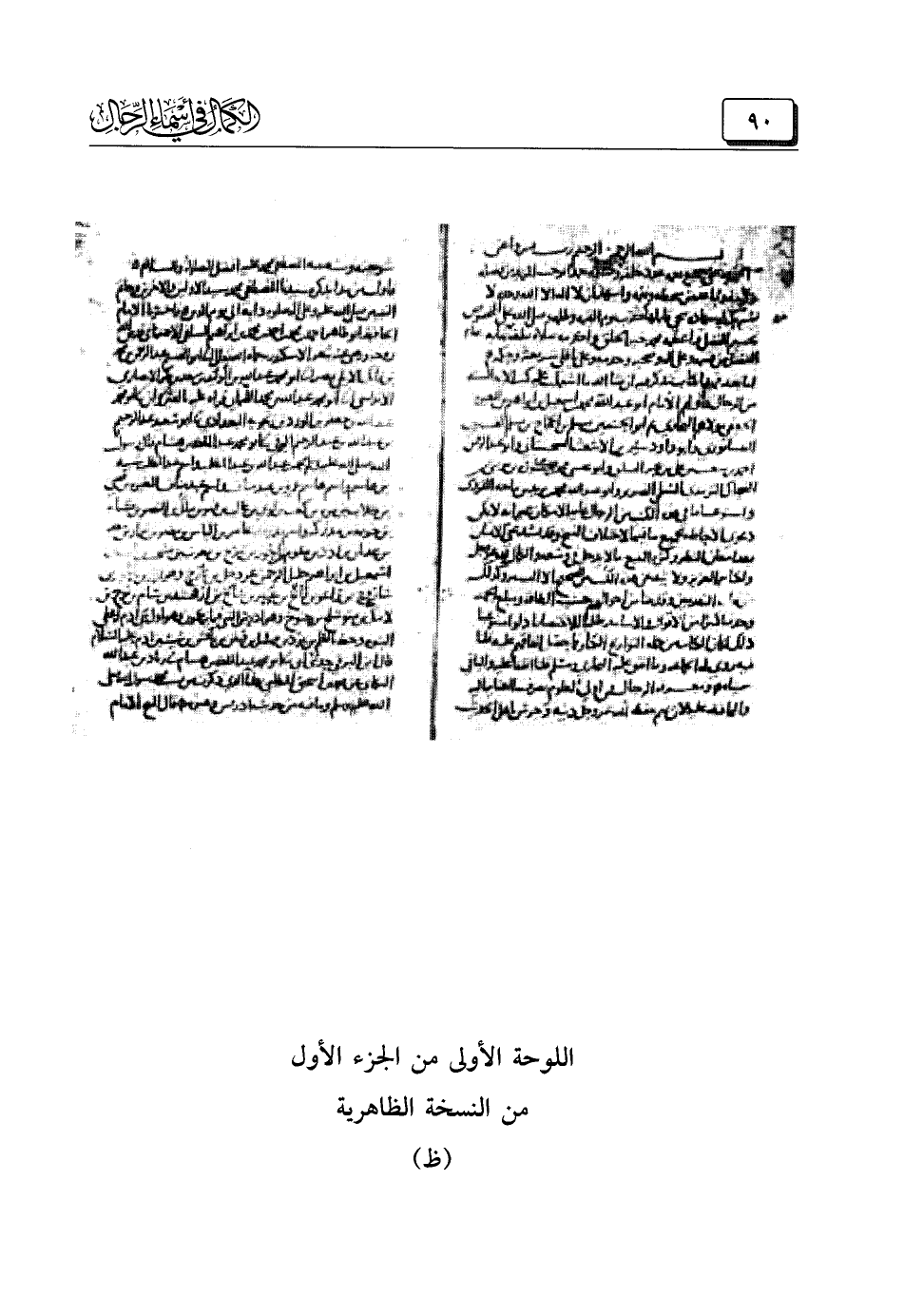 اللوحة الأولى من الجزء الأول من النسخة الظاهرية (ظ)