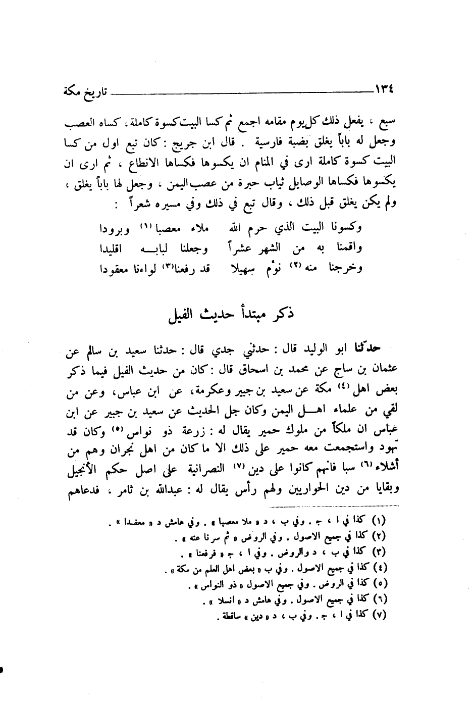 حَدَّثَنَا أَبُو الْوَلِيدِ قَالَ: حَدَّثَنِي جَدِّي، قَالَ: حَدَّثَنَا سَعِيدُ بْنُ سَالِمٍ، عَنْ عُثْمَانَ بْنِ سَاجٍ، عَنْ مُحَمَّدِ بْنِ إِسْحَاقَ، قَالَ: كَانَ مِنْ حَدِيثِ الْفِيلِ فِيمَا ذَكَرَ بَعْضُ أَهْلِ مَكَّةَ، عَنْ سَعِيدِ بْنِ جُبَيْرٍ وَعِكْرِمَةَ، عَنِ ابْنِ عَبَّاسٍ، وَعَنْ مَنْ لَقِيَ مِنْ عُلَمَاءِ أَهْلِ الْيَمَنِ، وَكَانَ جُلُّ الْحَدِيثِ عَنْ سَعِيدِ بْنِ جُبَيْرٍ، عَنِ ابْنِ عَبَّاسٍ " أَنَّ مَلِكًا مِنْ مُلُوكِ حِمْيَرَ يُقَالُ لَهُ §زُرْعَةُ ذُو نُوَاسٍ، وَكَانَ قَدْ تَهَوَّدَ وَاسْتَجْمَعَتْ مَعَهُ حِمْيَرُ عَلَى ذَلِكَ، إِلَّا مَا كَانَ مِنْ أَهْلِ نَجْرَانَ، وَهُمْ مِنْ أَشْلَاءِ سَبَإٍ، فَإِنَّهُمْ كَانُوا عَلَى دِينِ النَّصْرَانِيَّةِ، عَلَى أَصْلِ حُكْمِ الْإِنْجِيلِ وَبَقَايَا مِنْ دِينِ الْحَوَارِيِّينَ، وَلَهُمْ رَأْسٌ يُقَالُ لَهُ عَبْدُ اللَّهِ بْنُ ثَامِرٍ، فَدَعَاهُمْ -[135]- ذُو نُوَاسٍ إِلَى الْيَهُودِيَّةِ فَأَبَوْا، فَخَيَّرَهُمْ، فَاخْتَارُوا الْقَتْلَ، فَخَدَّ لَهُمْ أُخْدُودًا، وَصَنَّفَ لَهُمُ الْقَتْلَ، فَمِنْهُمْ مَنْ قَتَلَ صَبْرًا، وَمِنْهُمْ مَنْ أَوْقَدَ لَهُ النَّارَ فِي الْأُخْدُودِ فَأَلْقَاهُ فِي النَّارِ، إِلَّا رَجُلًا مِنْ سَبَإٍ يُقَالُ لَهُ دَوْسُ بْنُ ذِي ثُعْلَبَانَ، فَذَهَبَ عَلَى فَرَسٍ لَهُ يَرْكُضُ حَتَّى أَعْجَزَهُمْ فِي الرَّمَلِ، فَأَتَى قَيْصَرَ، فَذَكَرَ لَهُ مَا بَلَغَ مِنْهُمْ وَاسْتَنْصَرَهُ، فَقَالَ لَهُ: بَعُدَتْ بِلَادُكَ عَنَّا، وَلَكِنْ سَأَكْتُبُ لَكَ إِلَى مَلِكِ الْحَبَشَةِ، فَإِنَّهُ عَلَى دِينِنَا، فَيَنْصُرُكَ. فَكَتَبَ لَهُ إِلَى النَّجَاشِيِّ يَأْمُرُهُ بِنَصْرِهِ، فَلَمَّا قَدِمَ عَلَى النَّجَاشِيِّ بَعَثَ مَعَهُ رَجُلًا مِنَ الْحَبَشَةِ يُقَالُ لَهُ أَرْيَاطُ، وَقَالَ: إِنْ دَخَلْتَ الْيَمَنَ فَاقْتُلْ ثُلُثَ رِجَالِهَا، وَأَخْرِبْ ثُلُثَ بِلَادِهَا. فَلَمَّا دَخَلُوا أَرْضَ الْيَمَنِ تَنَاوَشُوا شَيْئًا مِنْ قِتَالٍ، ثُمَّ ظَهَرَ عَلَيْهِمْ أَرْيَاطُ، وَخَرَجَ زُرْعَةُ ذُو نُوَاسٍ عَلَى فَرَسِهِ فَاسْتَعْرَضَ بِهِ الْبَحْرَ حَتَّى لَجَّجَ بِهِ، فَمَاتَ فِي الْبَحْرِ، وَكَانَ آخِرَ الْعَهْدِ بِهِ، فَدَخَلَهَا أَرْيَاطُ، فَعَمِلَ مَا أَمَرَهُ بِهِ النَّجَاشِيُّ، فَقَالَ قَائِلٌ مِنْ أَهْلِ الْيَمَنِ فِي ذَلِكَ مَثَلًا يَضْرِبُهُ: لَا كَدَوْسٍ وَلَا كَأَغْلَاقِ رَحْلِهِ. وَقَالَ ذُو جَدَنٍ فِيمَا أَصَابَ أَهْلَ الْيَمَنِ وَمَا نَزَلَ بِهِمْ: