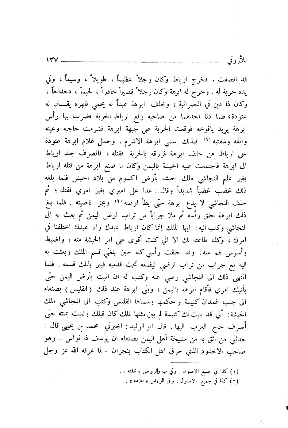 قَالَ أَبُو الْوَلِيدِ: أَخْبَرَنِي مُحَمَّدُ بْنُ يَحْيَى قَالَ: حَدَّثَنِي مَنْ أَثِقُ بِهِ مِنْ مَشْيَخَةِ أَهْلِ الْيَمَنِ بِصَنْعَاءَ " أَنَّ §يُوسُفَ ذَا نُوَاسٍ - وَهُوَ صَاحِبُ الْأُخْدُودِ الَّذِي حَرَقَ أَهْلَ الْكِتَابِ بِنَجْرَانَ - لَمَّا أَغْرَقَهُ اللَّهُ عَزَّ وَجَلَّ