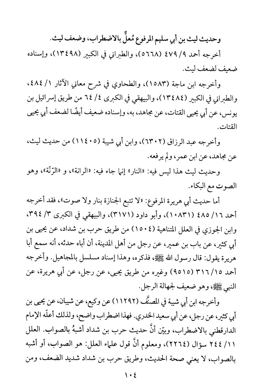 أما حديث أبي هريرة المرفوع: "لا تتبع الجنازة بنار ولا صوت"، فقد أخرجه أحمد ١٦/ ٤٨٥ (١٠٨٣١)، وأبو داود (٣١٧١)، والبيهقي في الكبرى ٣/ ٣٩٤، وابن الجوزي في العلل المتناهية (١٥٠٤) من طريق حرب بن شداد، عن يحيى بن أبي كثير، عن باب بن عمير، عن رجل من أهل المدينة، أن أباه حدثه، أنه سمع أبا هريرة يقول: قال رسول اللَّه -صلى اللَّه عليه وسلم-، فذكره، وهذا إسناد مسلسل بالمجاهيل. وأخرجه أحمد ١٥/ ٣١٦ (٩٥١٥) وغيره من طريق يحيى، عن رجل، عن أبي هريرة، عن النبي -صلى اللَّه عليه وسلم-، وهو ضعيف لجهالة الرجل.