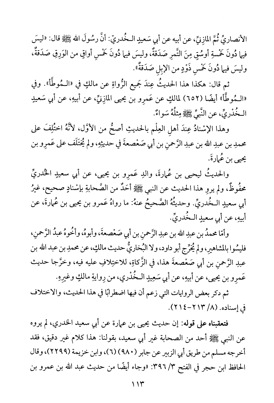 وأمّا محمدُ بن عبدِ اللَّه بن عبدِ الرَّحمنِ بن أبي صَعْصعةَ، وأبوهُ، وأخُوهُ عبدُ الرَّحمنِ، فليسُوا بالمشاهيرِ، ولم يُخرِّج أبو داود، ولا البُخاريُّ حديث مالكٍ، عن محمدِ بن عبد اللَّه بن عبدِ الرَّحمنِ بن أبي صَعْصعةَ هذا، في الزَّكاةِ، للاختِلافِ عليه فيه، وخرَّجا حديث عَمرِو بن يحيى، عن أبيهِ، عن أبي سَعِيدٍ الخُدْري، من رِوايةِ مالكٍ وغيرِهِ.