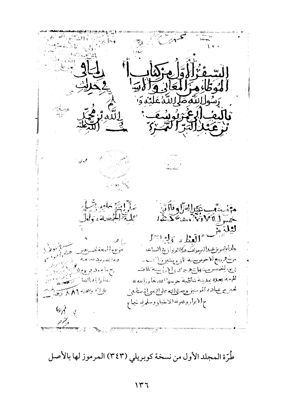 طُرّة المجلد الأول من نسخة كوبريلي (٣٤٣) المرموز لها بالأصل