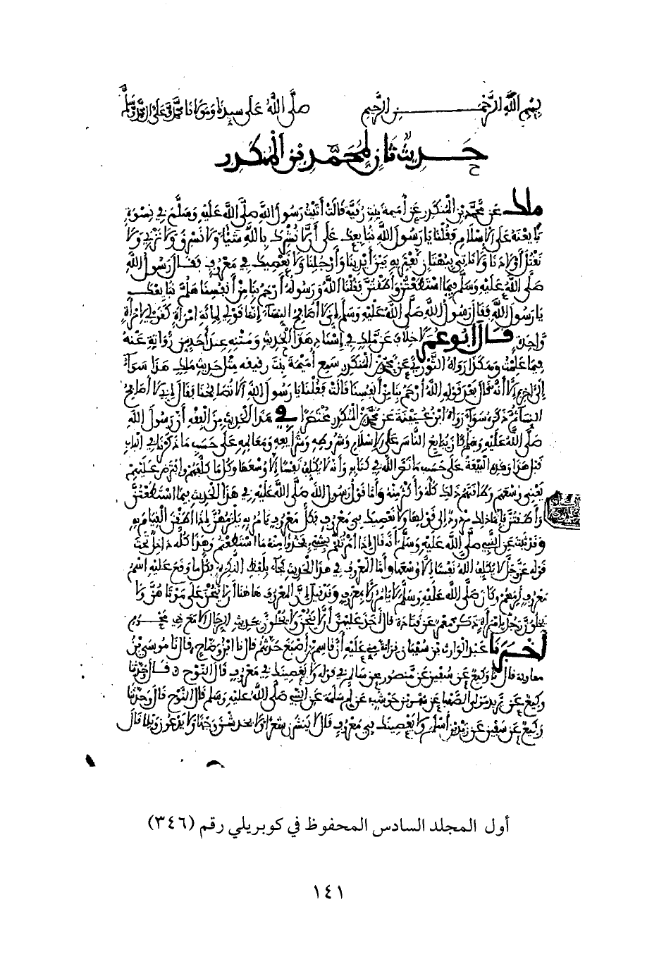 أول المجلد السادس المحفوظ في كوبريلي رقم (٣٤٦)