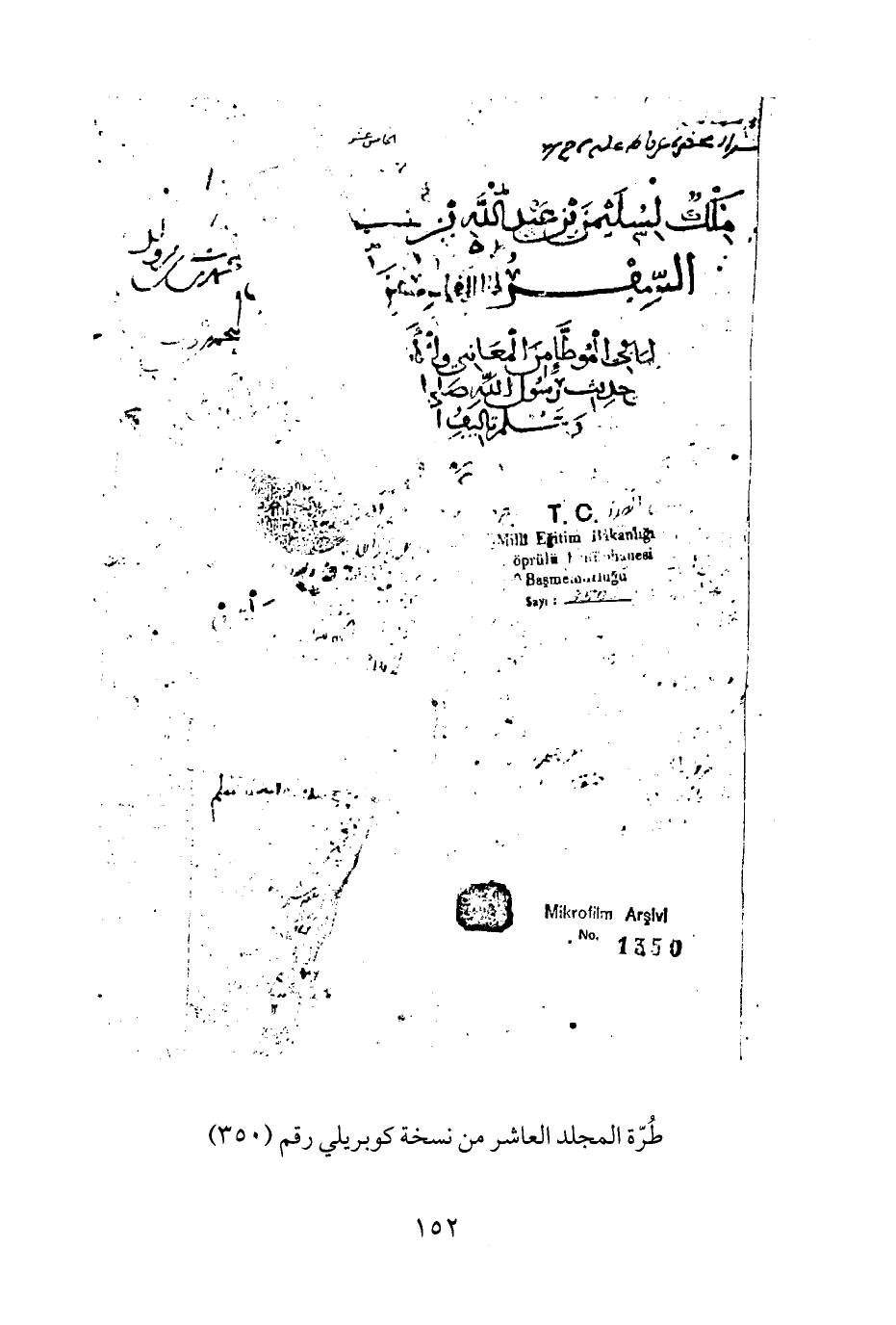 طُرّة المجلد العاشر من نسخة كوبريلي رقم (٣٥٠)